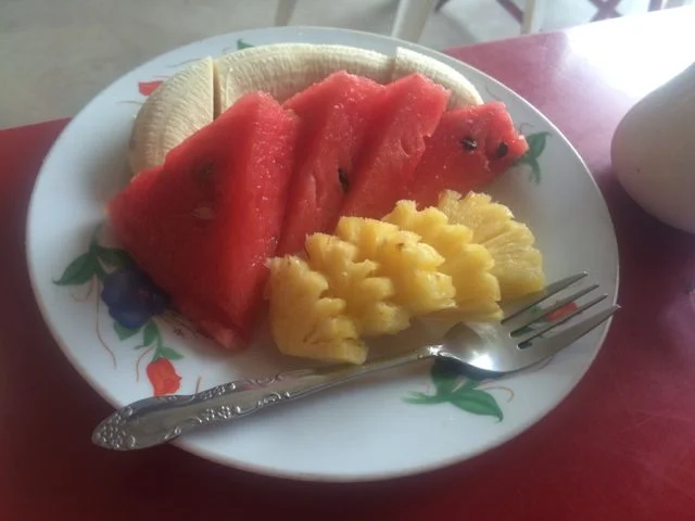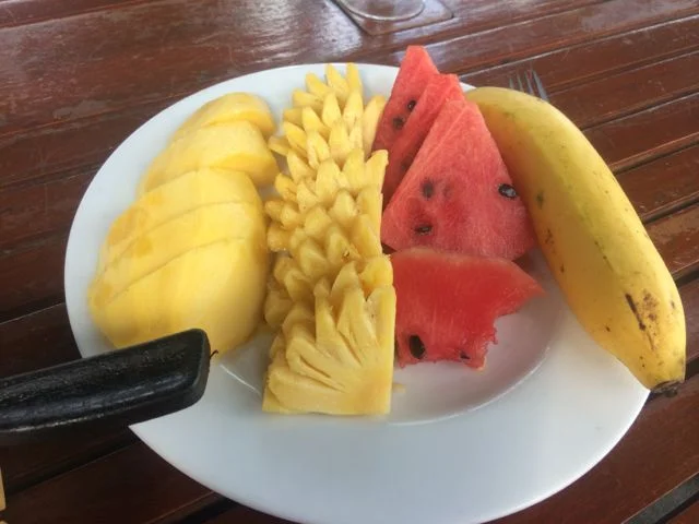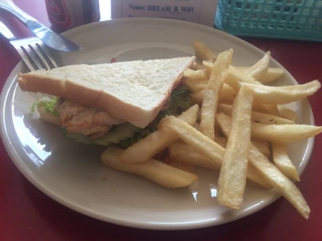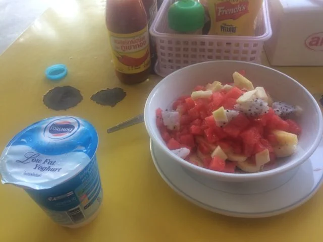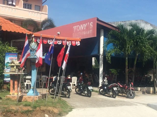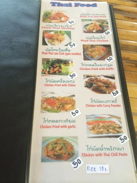For breakfast I’ve been having museli with fruit and yogurt, a small bottle of water and a black coffee, all for 100 Baht (£2). For lunch and dinner I usually get the BBQ chicken with vegetables and rice for 80 Baht (£1.60) and then a Thai dish on the side, such as Pad Ka-Prao or the delicious chicken and pineapple curry. Along with a large bottle of water my lunch or dinner comes around to 160 Baht (£3). Eating 3 times a day at Tony’s can cost you under £8 which is pretty good. Tony’s also has free WiFi with several access ponts.