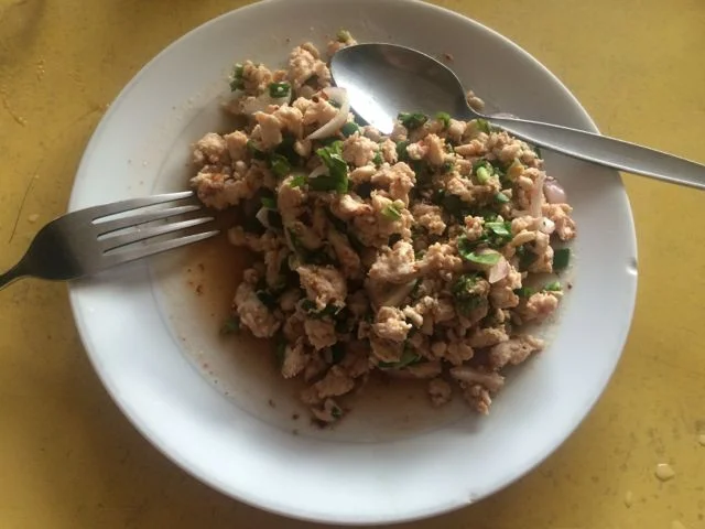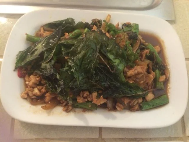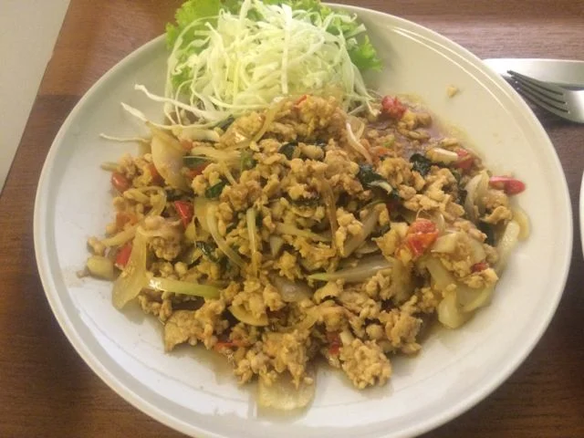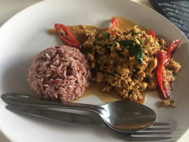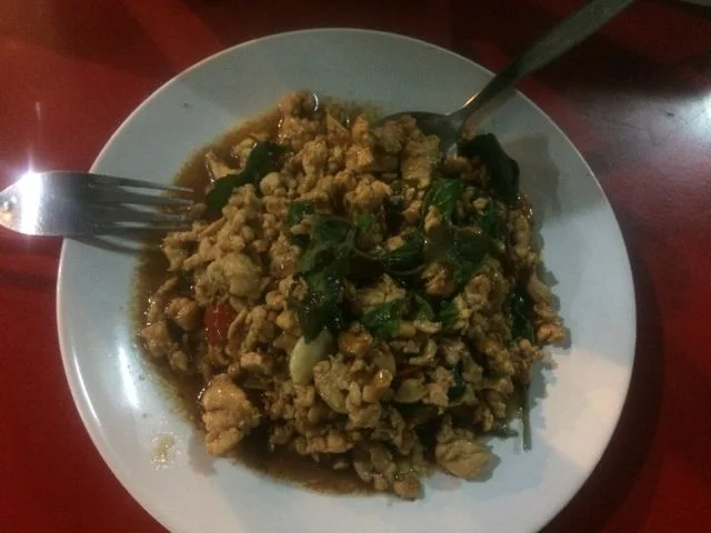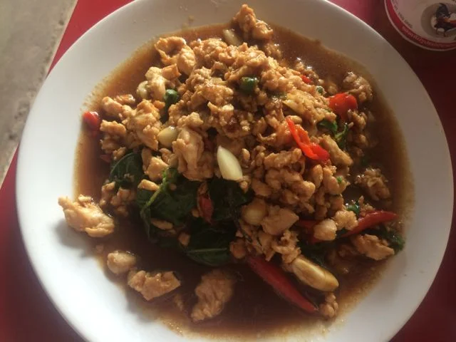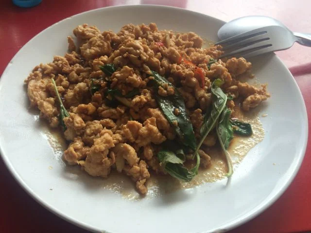 Most places sell some variety of steak or chicken breast with vegetables and brown rice, which is the healthy go to food in the area. I enjoy mixing it up with some traditional Thai dishes though, like Pad Ka-Prao (minced chicken with chilis and Thai holy basil). You must remember to say no sugar please when you order else all your healthy eating and hard work will be for nowt!